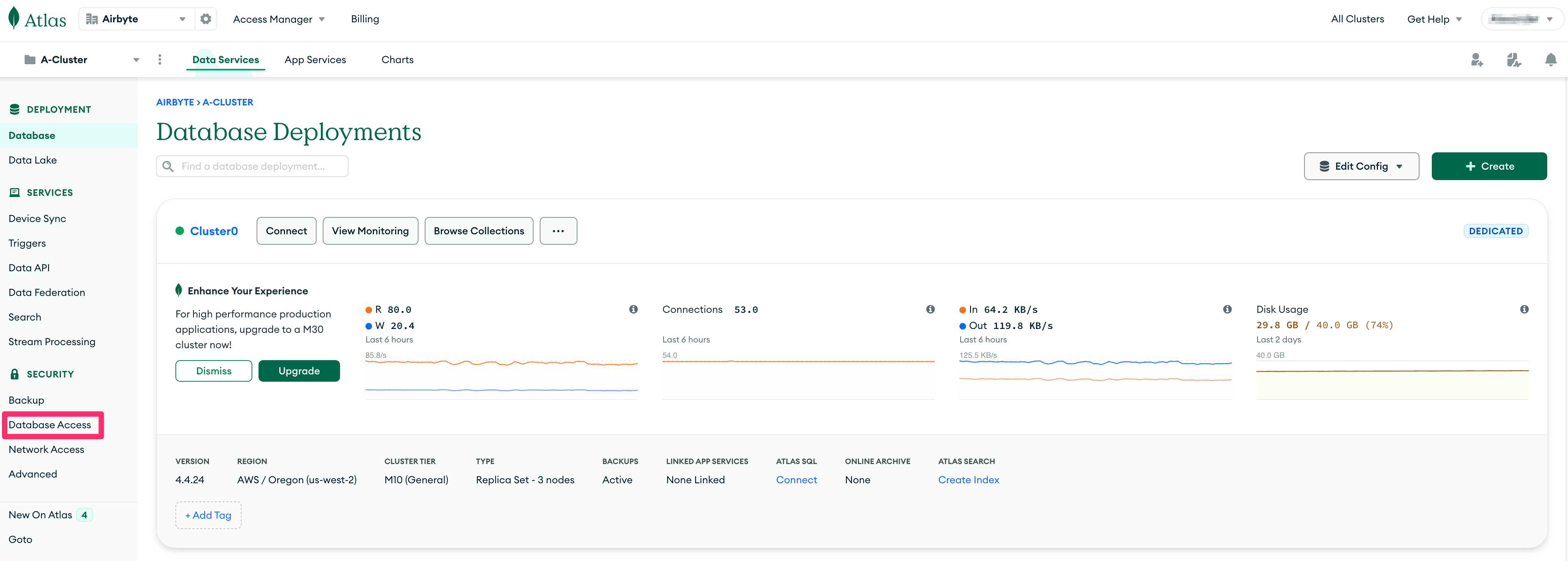 Atlas is MongoDB's cloud-hosted offering. Below are the steps to discover the connection configuration for a MongoDB Atlas-hosted replica set cluster: